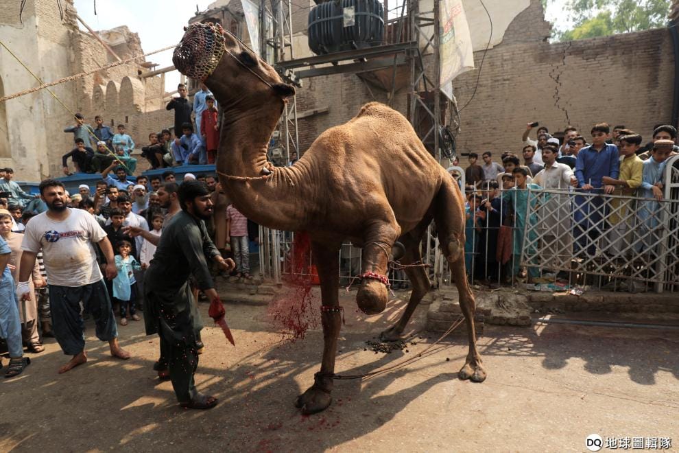 街頭男子以現場宰殺駱駝的方式,慶祝一年一度的宰牲節。