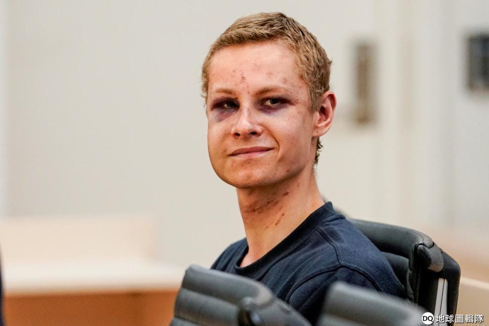 畫面中是出庭受審的嫌犯曼夏奧斯(Philip Manshaus)。