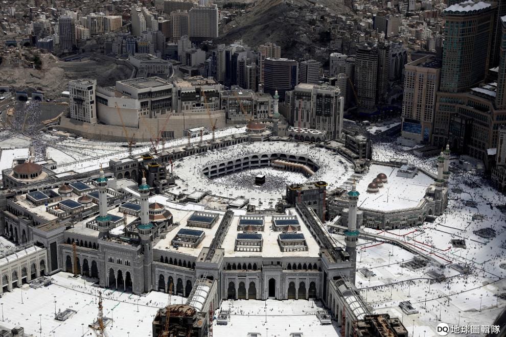 在這張空拍圖中,捕捉下了前來大清真寺(Grand mosque)朝聖的穆斯林信徒。