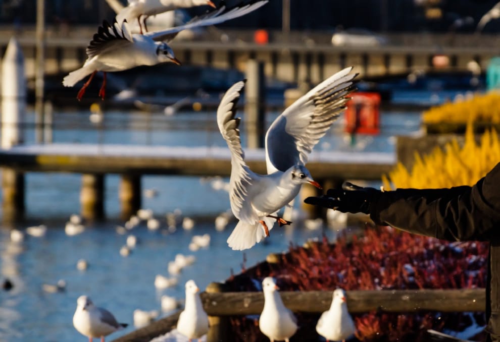 為了減少人鳥衝突,並避免加深海鷗對於「可以從人類手中取得食物」的認知,許多沿海地區都禁止遊客餵食海鷗。