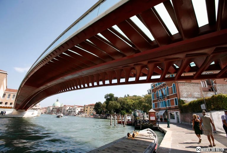 在遊人如織的義大利水都威尼斯,連接聖路濟亞車站和羅馬廣場的是一座以鋼鐵和玻璃打造而成的橋。這座橋名為「憲法橋」,它是知名西班牙建築師卡拉特拉瓦(Santiago Calatrava)的得意之作,也是威尼斯 70年來首次建造的橋樑。