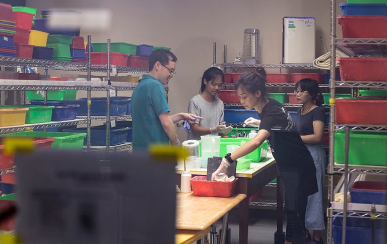 不過紅火蟻的食量很大,有時蟻后又生太多、一個盒子可多達十萬隻,就必須清掉一些,免得伙食開銷太大,實驗室被吃垮……