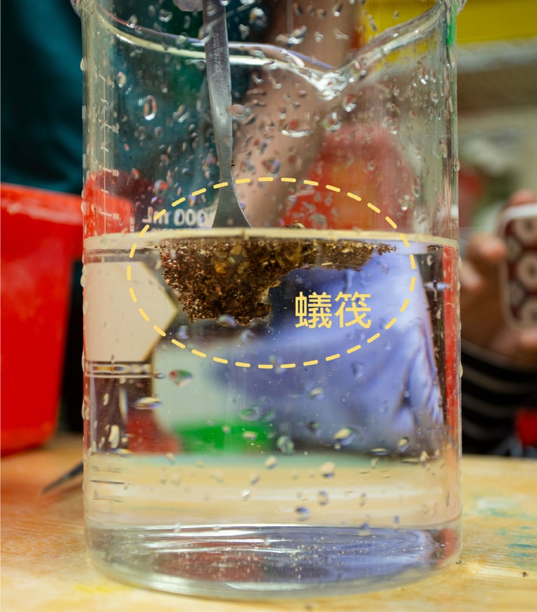 下一個問題是:怎麼把巢內的紅火蟻逼出來?這要說到紅火蟻有個神奇的本領:蟻筏。