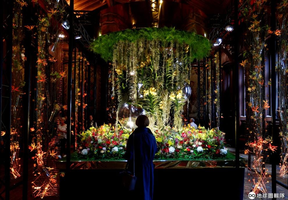 一名遊客拜訪了被五彩花朵裝飾的布魯塞爾(Brussels)市政廳,這裡正在進行活動「花卉時光」。