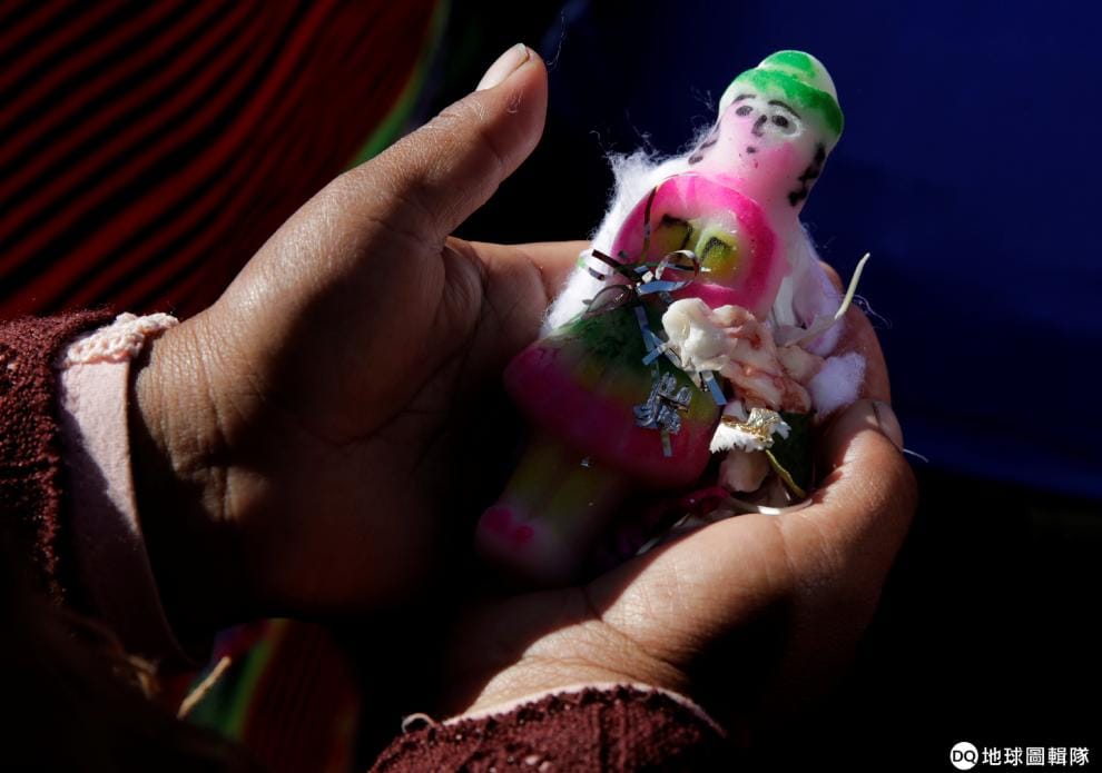 在玻利維亞總統莫拉萊斯(Juan Evo Morales)的造勢活動上,一名艾馬拉(Aymara)巫醫捧著精心製作的人偶,準備在祭祀儀式中替同為艾馬拉原住民的莫拉萊斯祈福,保佑他在今年 10月20日的總統大選中能夠順利連任。