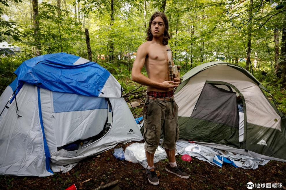 在五十年前舉辦胡士托(Woodstock)音樂節的紐約州貝塞爾(Bethel)小鎮,一名前來慶祝胡士托音樂節滿五十周年的男子手捧煙草吸食器留影。