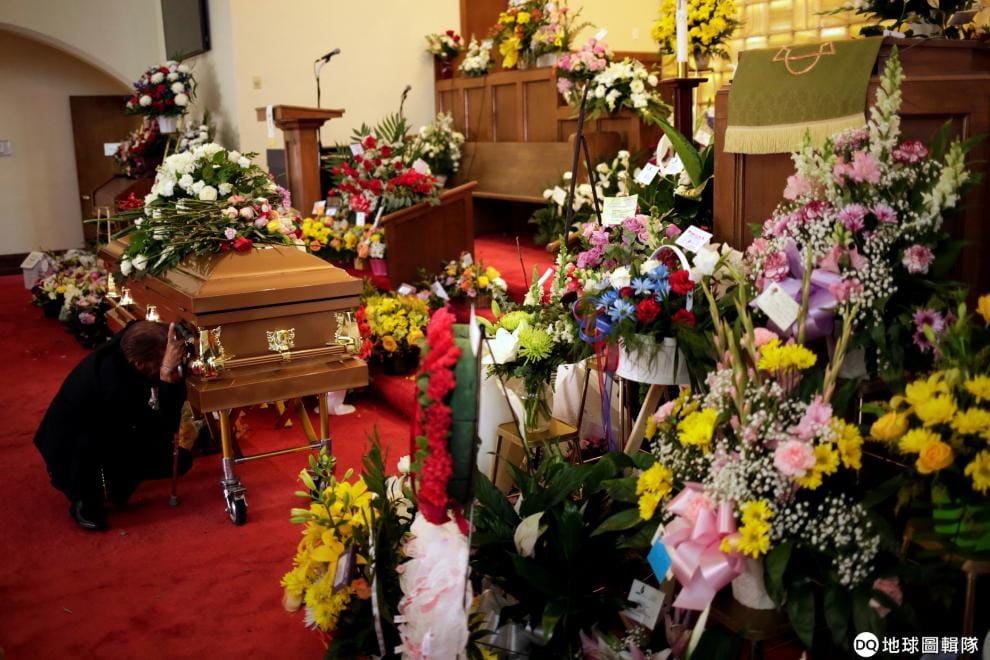 在德州艾爾帕索市(El Paso),巴斯可(Antonio Basco)撫著妻子芮卡德(Margie Reckard)的棺木痛哭,芮卡德在 3號發生的沃爾瑪超市槍案中遭射殺身亡。