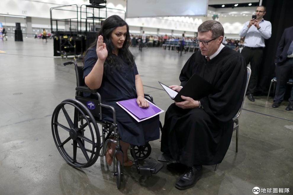 在加州洛杉磯,今年 31歲的塔特芙(Tatev)從亞美尼亞移民到美國已經 17年了,然而在正式的美國公民宣誓典禮前,塔特芙已經開始陣痛準備生產,不過她拒絕到醫院,表示說什麼也要在今天成為美國公民。於是,法官卡尼(Cormac J. Carney)為她準備了快速的簡易宣誓典禮,讓她趕快成為美國公民後就醫。