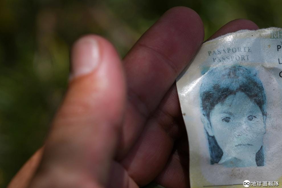 在德州邊界沿著格蘭河的米申市(Mission),一名邊界警察正在端詳移民掉落的護照。