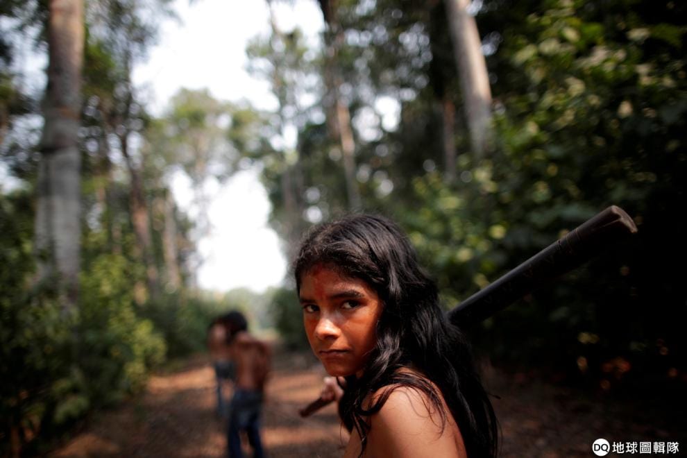 在不斷遭到大火吞噬的亞馬遜雨林,當地原民穆拉人(Mura people)拿起武器,站在已經被濫墾濫伐的土地上。