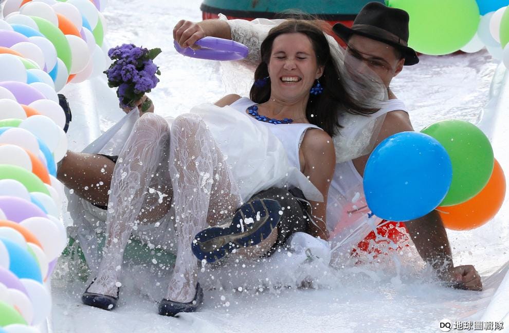 在西伯利亞地區的克拉斯諾亞爾斯克(Krasnoyarsk),人們在當地公園舉辦的夏日慶典中玩得不亦樂乎。