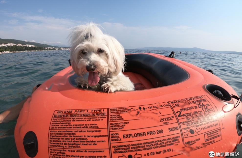 克羅埃西亞─橡皮艇上的小狗