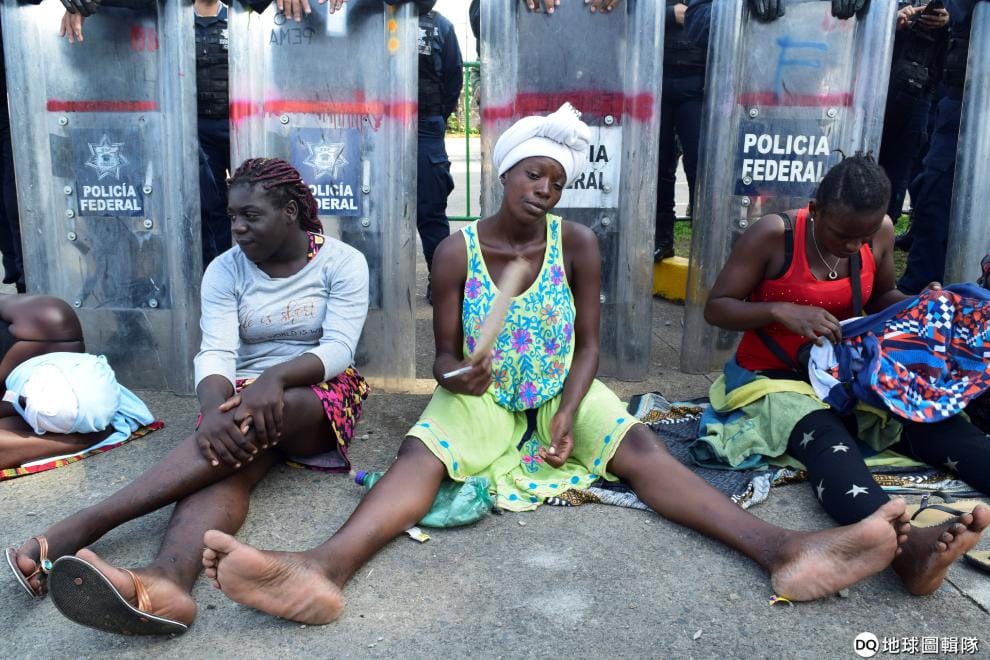在瓜地馬拉和墨西哥邊界的塔帕丘拉市(Tapachula),鎮暴警察擋下了來自海地和非洲的移民,這些移民正在 21世紀移民拘留中心外抗議,要求墨西哥移民官員加速他們的人道救援簽證,讓他們可以盡快離開墨西哥到美國。