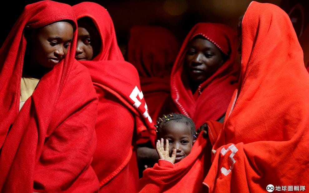 在馬拉加港(port of Malaga),獲救的移民準備從救援船上下來,結束他們在地中海載浮載沉的危險之旅。