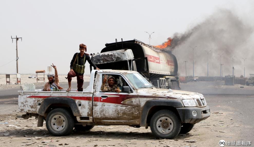 在位於葉門南部的亞丁港(Aden),分離主義分子在巡邏時和政府的武裝部隊發生衝突,他們在取得勝利後對著鏡頭比出勝利手勢。