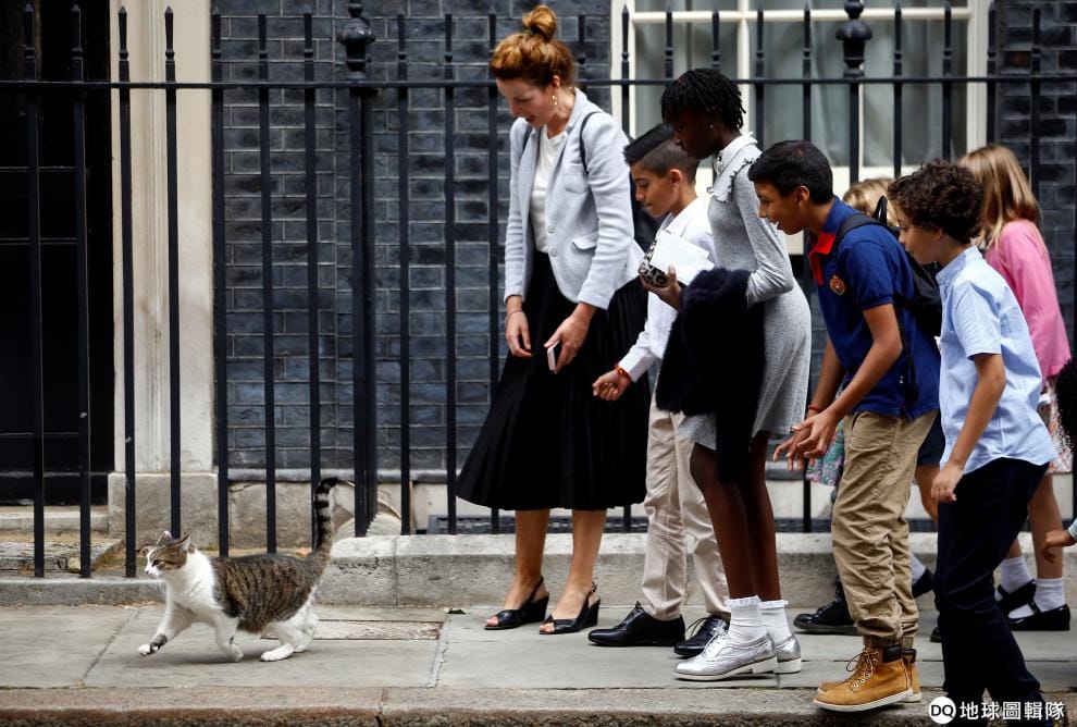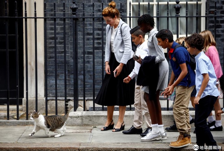 在英國首相官邸唐寧街十號前,首席捕鼠官賴瑞(Larry)的出現,讓一旁的人類好驚喜。