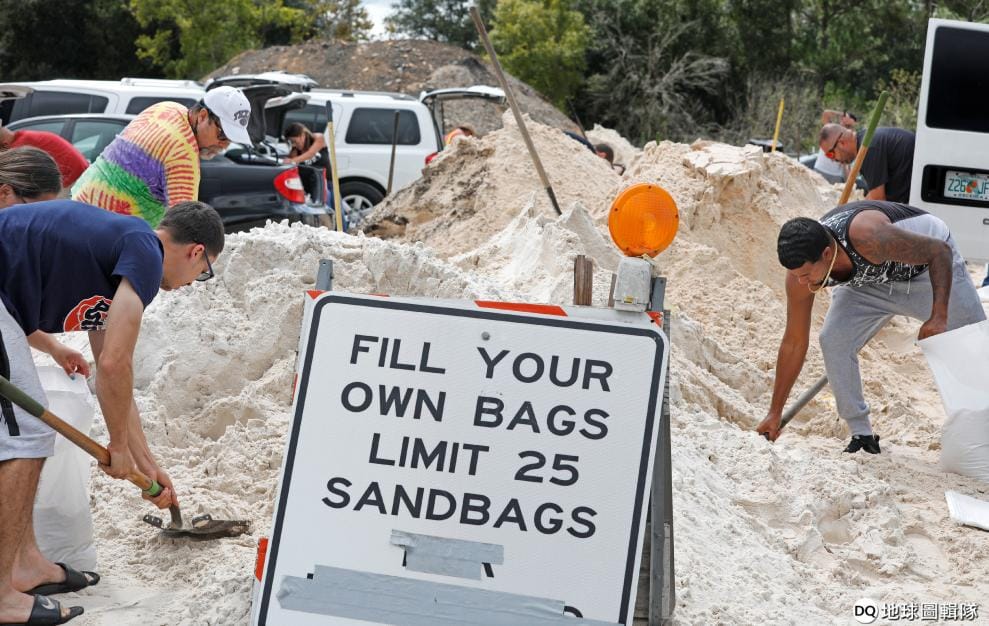 在熱帶氣旋多利安(Hurricane Dorian)到來前,佛羅里達州的民眾忙著把一個個沙包裝滿,拿回家防止水淹家門口。