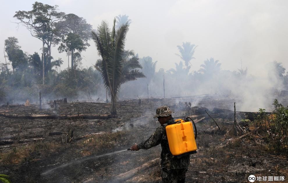在亞馬遜森林的所在地朗多尼亞州(Rondonia),消防人員正在撲滅農夫為了刀耕火種放的火。