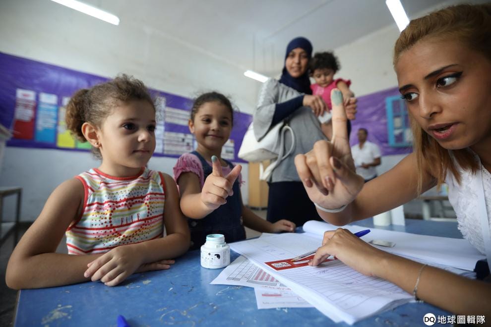在首都突尼斯(Tunis)的一間投票所內,選務人員在還沒有投票權的孩子們面前示範怎麼投票。根據最新消息,這一次的總統大選總共有 24位候選人,其中又以今年 61歲、無黨籍的法律學教授薩伊德(Kais Saied)和今年 56歲、被關在牢中的媒體大亨卡魯伊(Nabil Karoui)最受到關注,兩人也在票數尚未全部開完下,分別表示自己領先對方。這次的總統大選也是突尼西亞繼引發阿拉伯之春的茉莉花革命後,第二次民選總統。