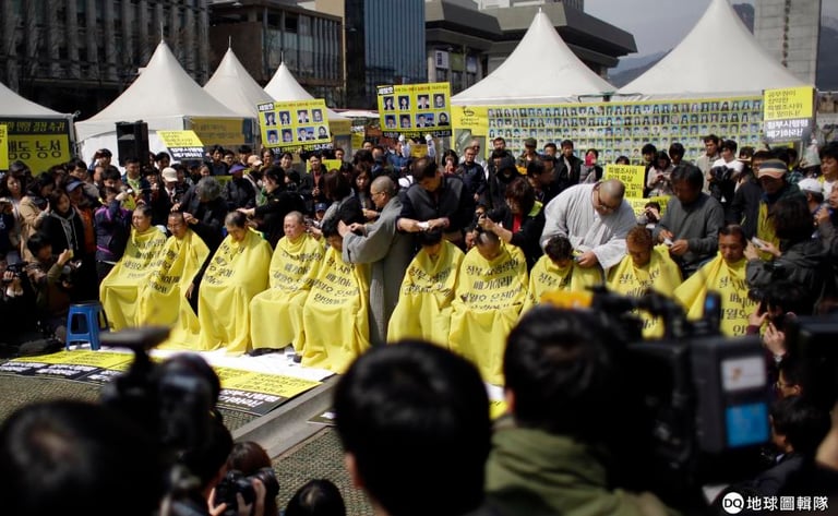 在南韓,剃髮是非常傳統的抗議象徵,代表抗議者意志堅決,不見改變決不罷休的決心。在 1960年代到1970年代、南韓處於軍政府威權統治之下,反對派人士會剃頭表達對當局的不滿,演變至今便成為了一種抗議手段。抗議者不僅會在公開場合剃髮,還會使用傳統的剪刀慢慢修剪,而不是電動剃刀。