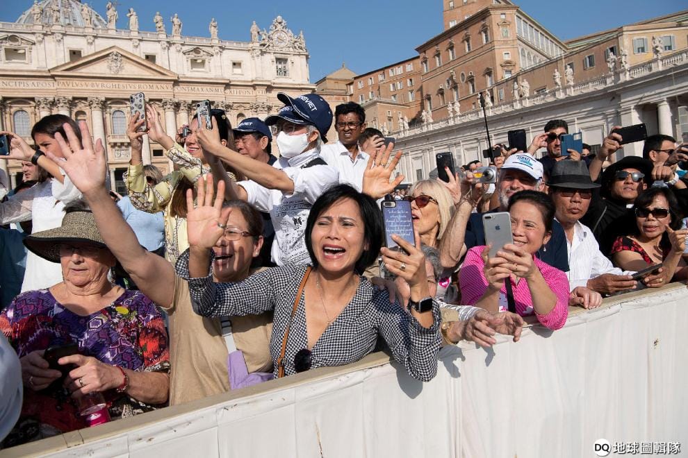 前來參加彌撒的信徒,看到羅馬天主教宗方濟各(Pope Francis)的出現興奮地揮手。