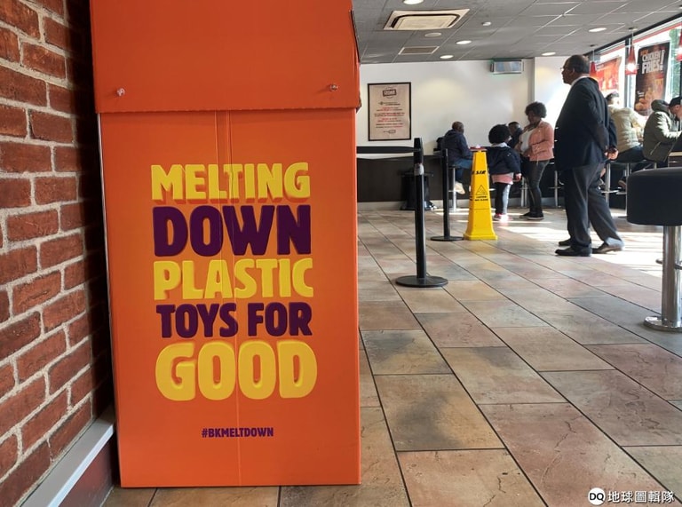 在曼徹斯特一間漢堡王速食連鎖餐廳內,可以看到擺著塑膠玩具回收箱。