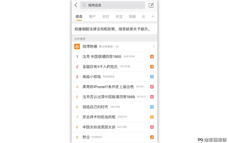 「豬肉自由」搜索沒結果