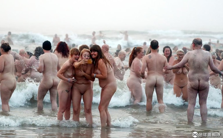 在英國最北部的諾森伯蘭郡(Northumberland)長 11公里的卓洛里卓海灣(Druridge Bay),超過 700多位民眾脫下衣服奔入海中,參加一年一度的North East Skinny Dip活動,為精神健康組織MIND募款。
