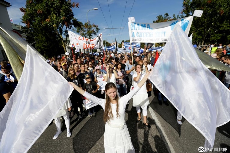 在首都布拉提斯拉瓦(Bratislava),民眾舉起旗幟上街反對墮胎合法化,並且要求當局禁止女性墮胎。