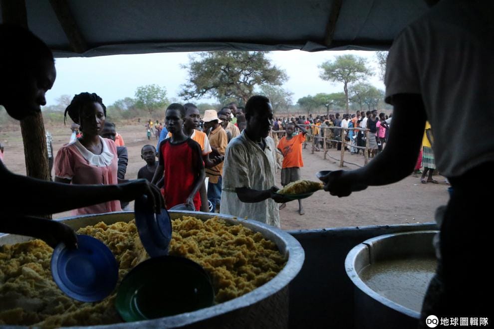2016年12月,來到烏干達的南蘇丹難民正在排隊等待領取食物。