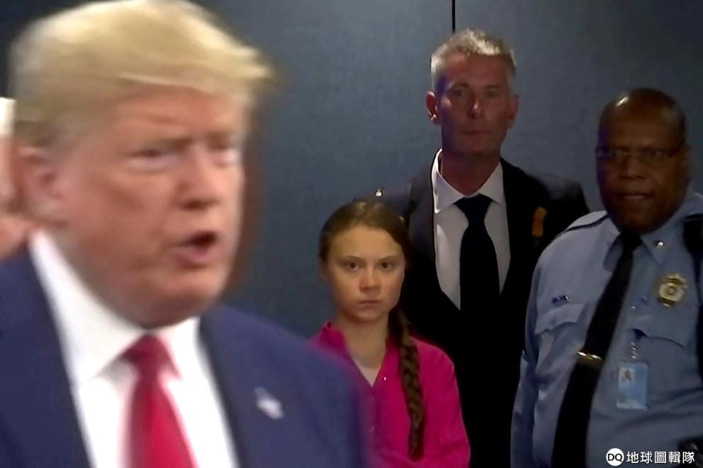 在聯合國氣候行動峰會前,瑞典環保鬥士桑柏格(Greta Thunberg)站在美國總統川普(Donald Trump)的身後,看著他發表演說。在峰會上,桑柏格對著台下的各國領袖慷慨陳詞道:「你們用空泛的言語偷走了我的夢想和我的童年。」此外,桑柏格指控各國領袖忽視氣候危機背後的科學,她說:「我們正處在大滅絕的開始,而你們能做的就只是談論金錢和宛如童話故事般的永恆經濟成長,你們怎麼敢!」