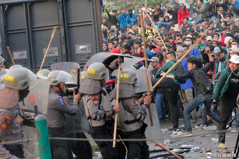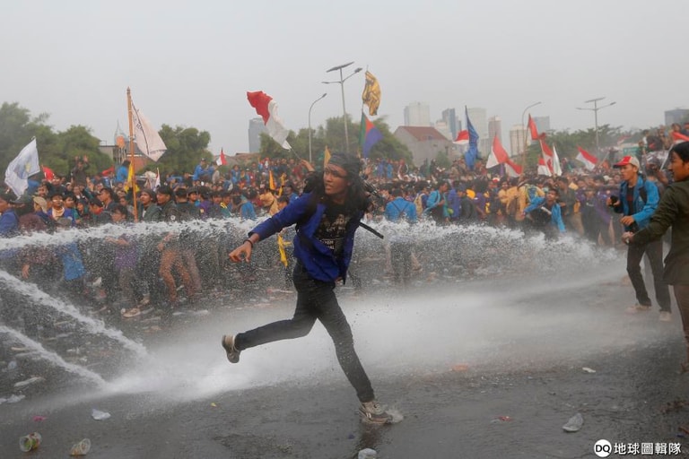 過去兩天,首都雅加達的國會建築外充滿成千上萬名抗議學生,他們向警察丟擲塑膠水瓶、石頭等,並且燃燒廢輪胎。警察則以催淚瓦斯和水柱試圖驅離學生。