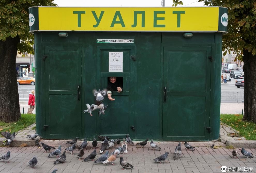 烏克蘭一管廁所不忘餵鴿