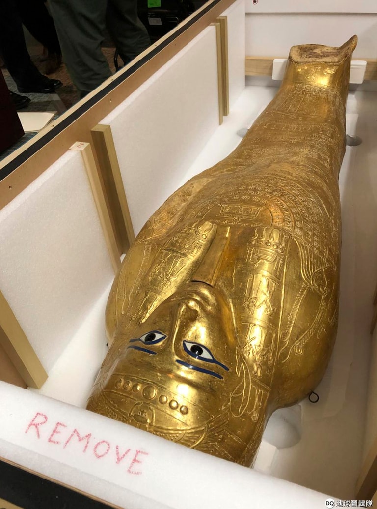 這具鍍金的棺木來自公元前 150到公元前 50年的古埃及,曾經用來安放古埃及祭司Nedjemankh的木乃伊。該棺木在 2011年埃及革命後失竊,並被走私到阿拉伯聯合國大公國、德國,最後來到法國。