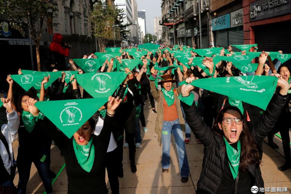 人們走上街頭響應國際安全墮胎日,他們手上的布條寫著:「讓全墨西哥墮胎合法化。」