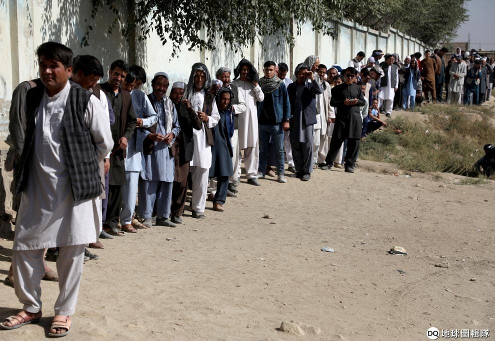 阿富汗人耐心地在投票所外排隊,等著要就總統大選按下神聖的一票。