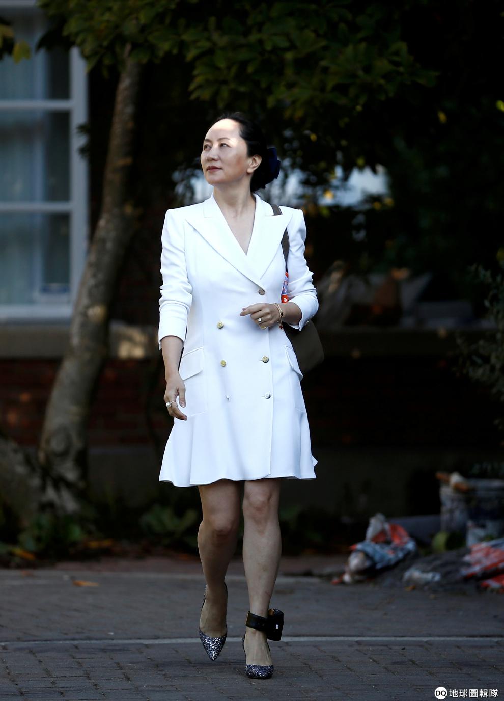 中國科技公司華為的財務長孟晚舟走出住處,帶著電子腳鐐的她,準備參加在不列顛哥倫比亞省最高法院舉辦的聽證會。