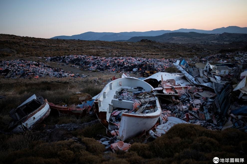 在列斯伏斯島的城鎮米西姆納(Mithymna)附近,數以千計、難民和移民穿過的救生衣被棄置於此,這些人是從土耳其渡過愛琴海後來到希臘。