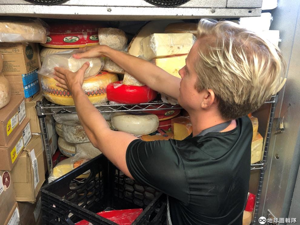 在一家起司專賣店裡,員工貝克(Max Becker)正忙著整理進口自歐盟國家的起司。