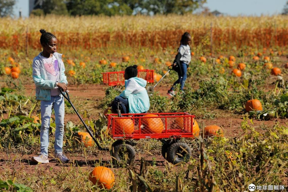 在一座南瓜農場裡,橘澄澄一片的南瓜讓人目不暇給。