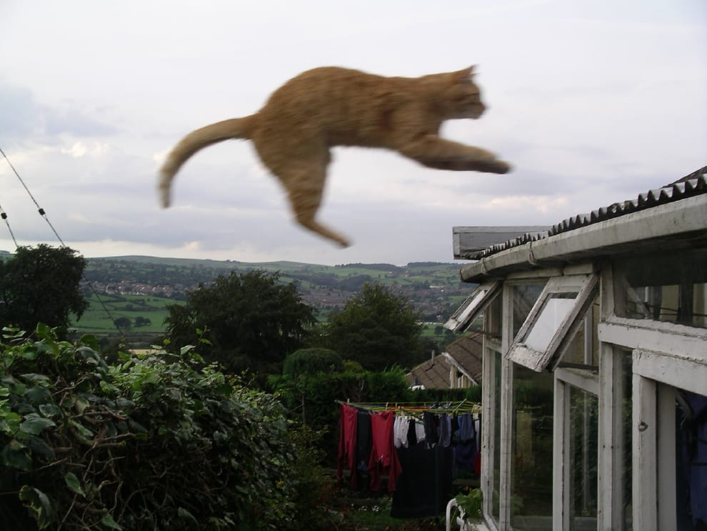 圖為 2004年,一名飼主記錄下家中喜歡在屋頂上跳來跳去的貓咪。