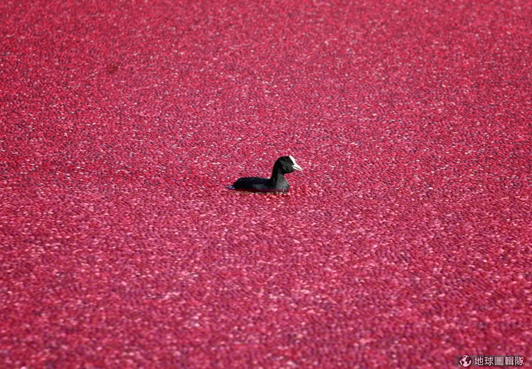 英國當地正在復興「水收法」來豐收蔓越莓,大約10月左右開始,當地會採收他們的蔓越莓,並倒入大片的水池中,鮮桃紅色的景象非常的特別!圖片來源:Chris Jackson/Getty Images