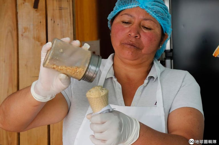 這間奇特的天竺鼠冰淇淋店開設在連接厄瓜多首都基多(Quito)和桑戈爾基(Sangolqui)的高速公路旁。簡單的攤位設有兩組內用桌位,隔壁比鄰牙醫診所和其他商家。即便生意規模很小,每周仍平均賣出 150球單價一美元(折台幣約 30元)的天竺鼠冰淇淋。