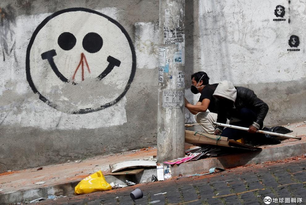 厄瓜多一笑臉後的抗議者