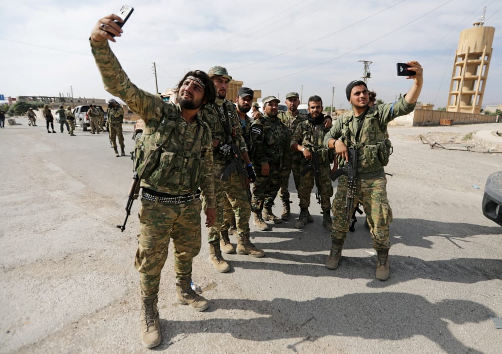 在位於土耳其邊界的敘利亞城市泰勒艾卜耶德(Tel Abyad),由土耳其在背後支持的敘利亞反政府軍開心自拍,他們在土耳其的號召下進入當地,準備將徘徊在邊界的敘利亞庫德族勢力給趕走。