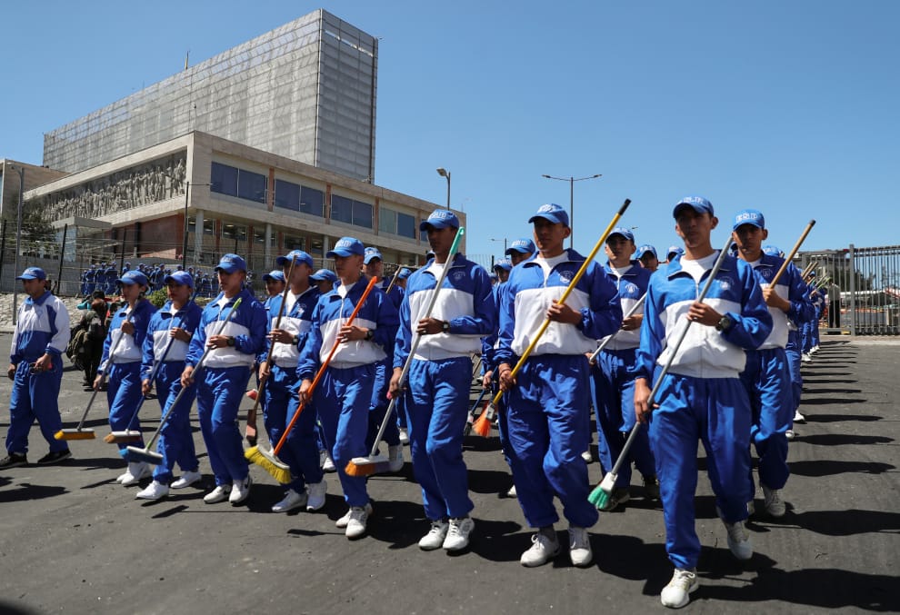 在首都基多(Quito),警校學生們手拿刷子準備上街打掃,清除前幾日民眾示威留下的垃圾。不久前,大批民眾上街抗議厄瓜多總統莫雷諾(Lenin Moreno)撙節政策,他們不滿莫雷諾總統取消了 40多年的燃料補助。而在歷時兩周的抗議與暴力衝突後,厄瓜多政府已經同意暫緩撙節政策,街頭示威的緊繃氛圍也逐漸趨緩。