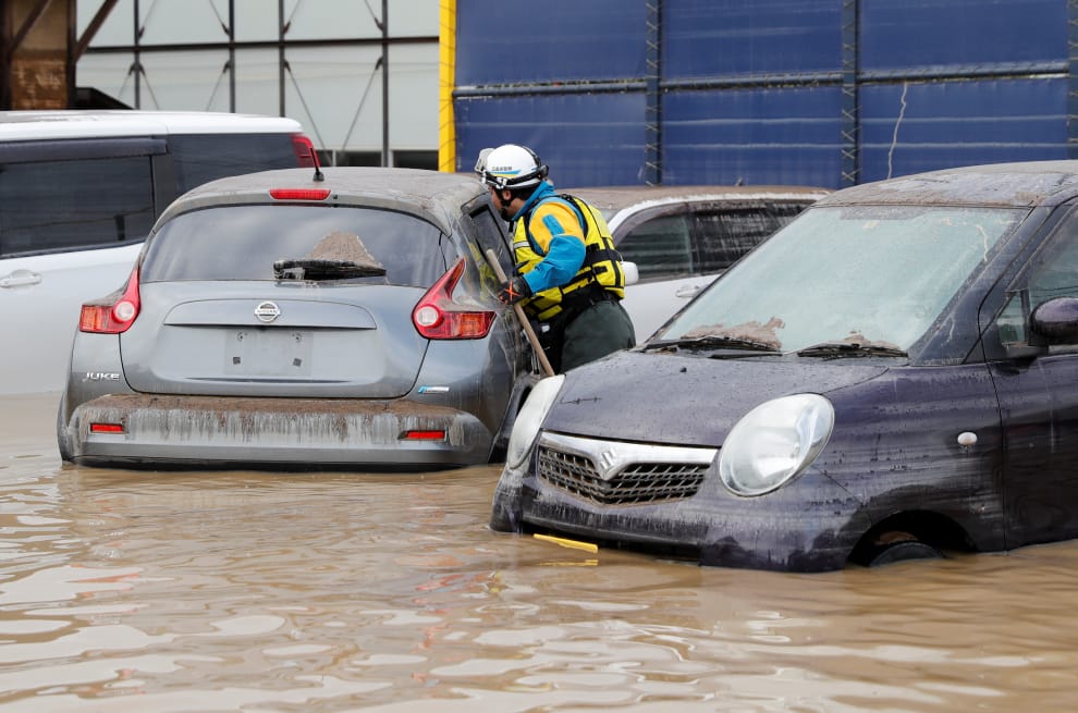 在遭到哈吉貝颱風(Hagibis)重創的長野縣,救難人員在一輛輛泡水車中尋找受困者。截至目前為止,哈吉貝颱風帶來的災情已經至少造成日本全國 68人死亡、212人受傷、19人失蹤。