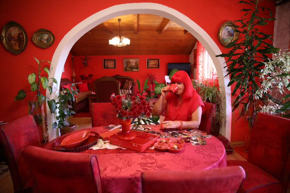 在位於東北部的圖茲拉(Tuzla),熱愛紅色的蕾伯尼克(Zorica Rebernik)正在喝咖啡。