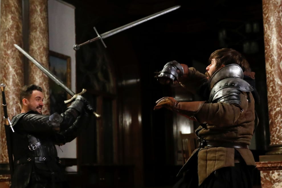 在位於波蘭西南部的摩斯納城堡(Moszna Castle),人們打扮成波蘭奇幻小說《獵魔士》(The Witcher)裡頭的角色練習鬥劍。情節引人入勝的《獵魔士》不只被改編成暢銷全球的電玩遊戲,也即將被串流媒體巨頭Netflix改編成電視劇上映。