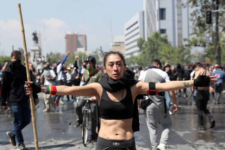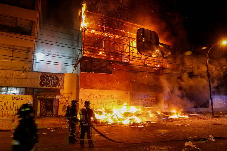 過去幾天,智利首都聖地亞哥和各大城市街頭充滿暴動、水柱、催淚瓦斯和熊熊火焰。在警民衝突越演越烈的同時,銀行、公車、地鐵站、超級市場、服裝工廠、能源公司總部等地都遭到示威民眾破壞和縱火,造成至少 8人死亡,1,462人被警方拘留。
